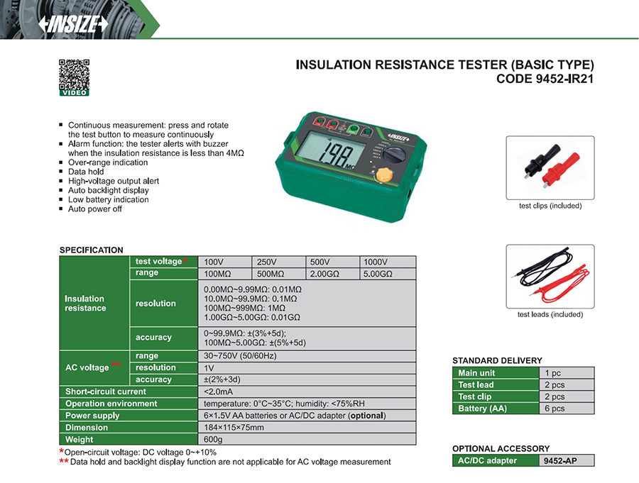 | 9452-IR21 | 100V~1000V | 5GΩ | no |
