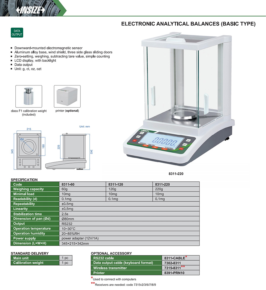 | 8311-220 | 220g | 0.0001g | no | Ø80mm |
