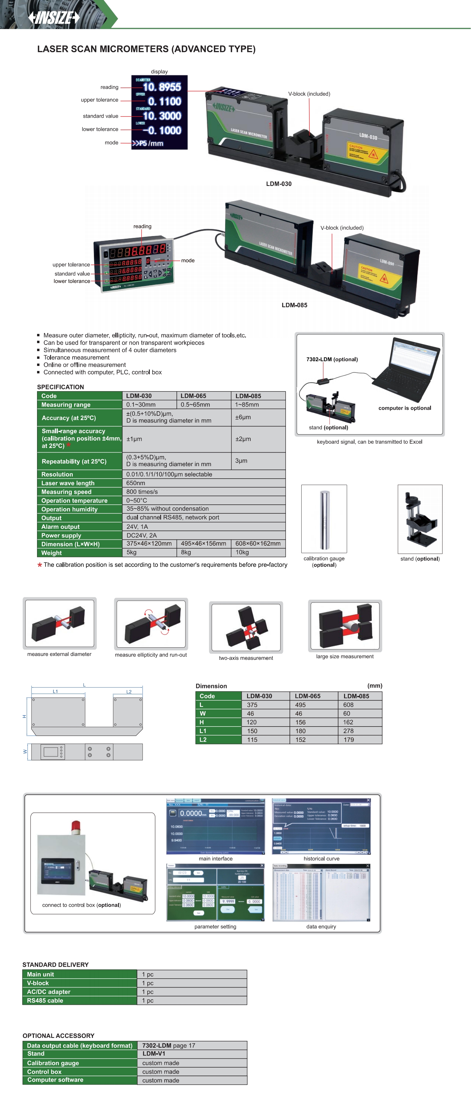 | LDM-030 | 0.1~30mm | ±(0.5+10%D)μm | (0.3+5%D)μm |