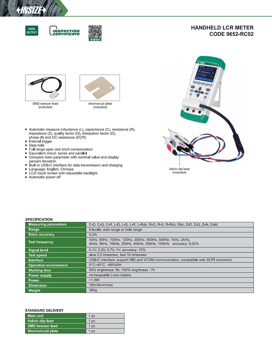 Automatic measure inductance (L), capacitance (C), resistance (R), impedance (Z), quality factor (Q), dissipation factor (D), phase (θ) and DC resistance (DCR)