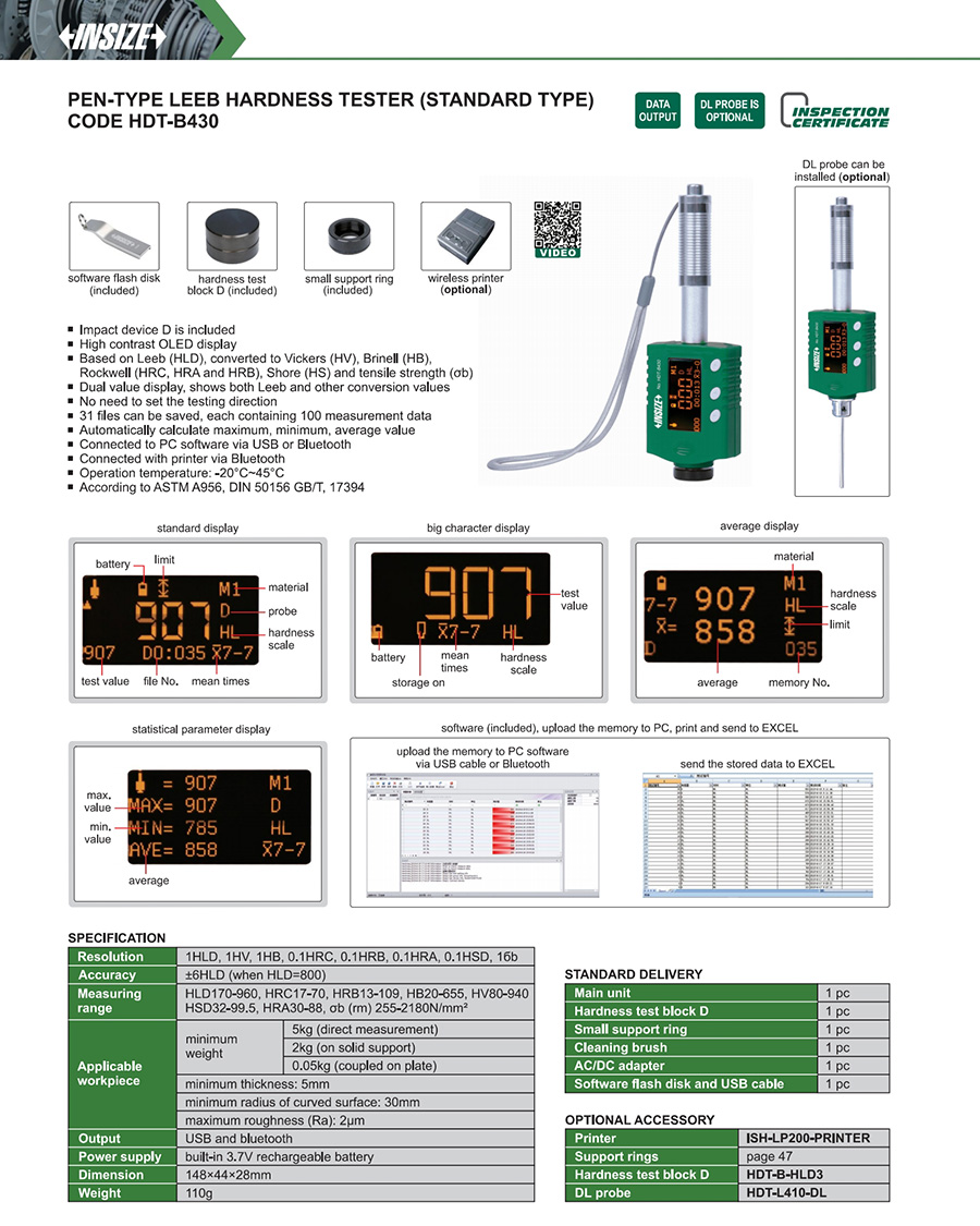 | HDT-B430 | HLD170-960, HRC17-70, HRB13-109, HB20-655, HV80-940, HSD32-99.5, HRA30-88, σb (rm) 255-2180N/mm² | built-in 3.7V rechargeable battery |