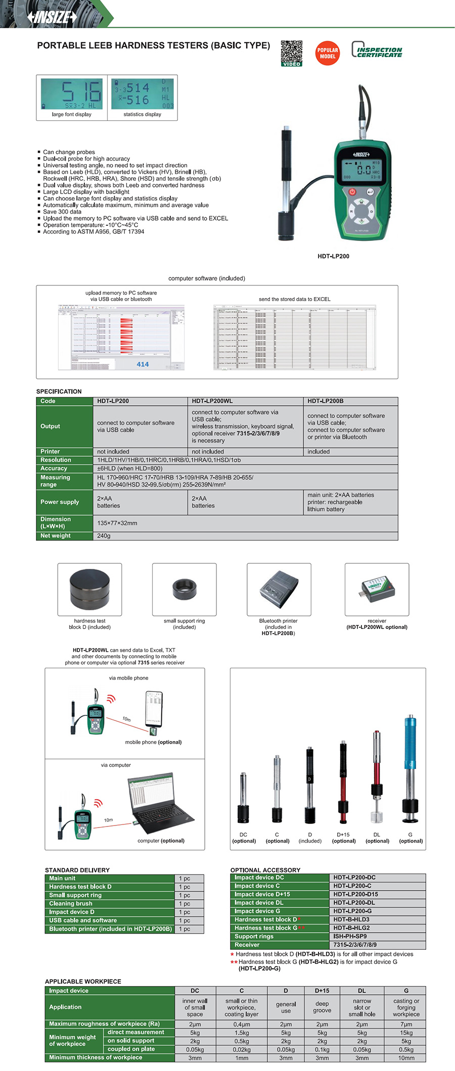 Based on Leeb (HLD), converted to Vickers (HV), Brinell (HB), Rockwell (HRC, HRB, HRA), Shore (HSD) and tensile strength (σb)