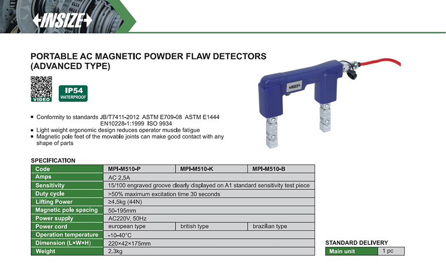 | MPI-M510-P | 15/100 engraved groove clearly displayed on A1 standard sensitivity test piece | ≥4.5kg (44N) | 50-195mm |