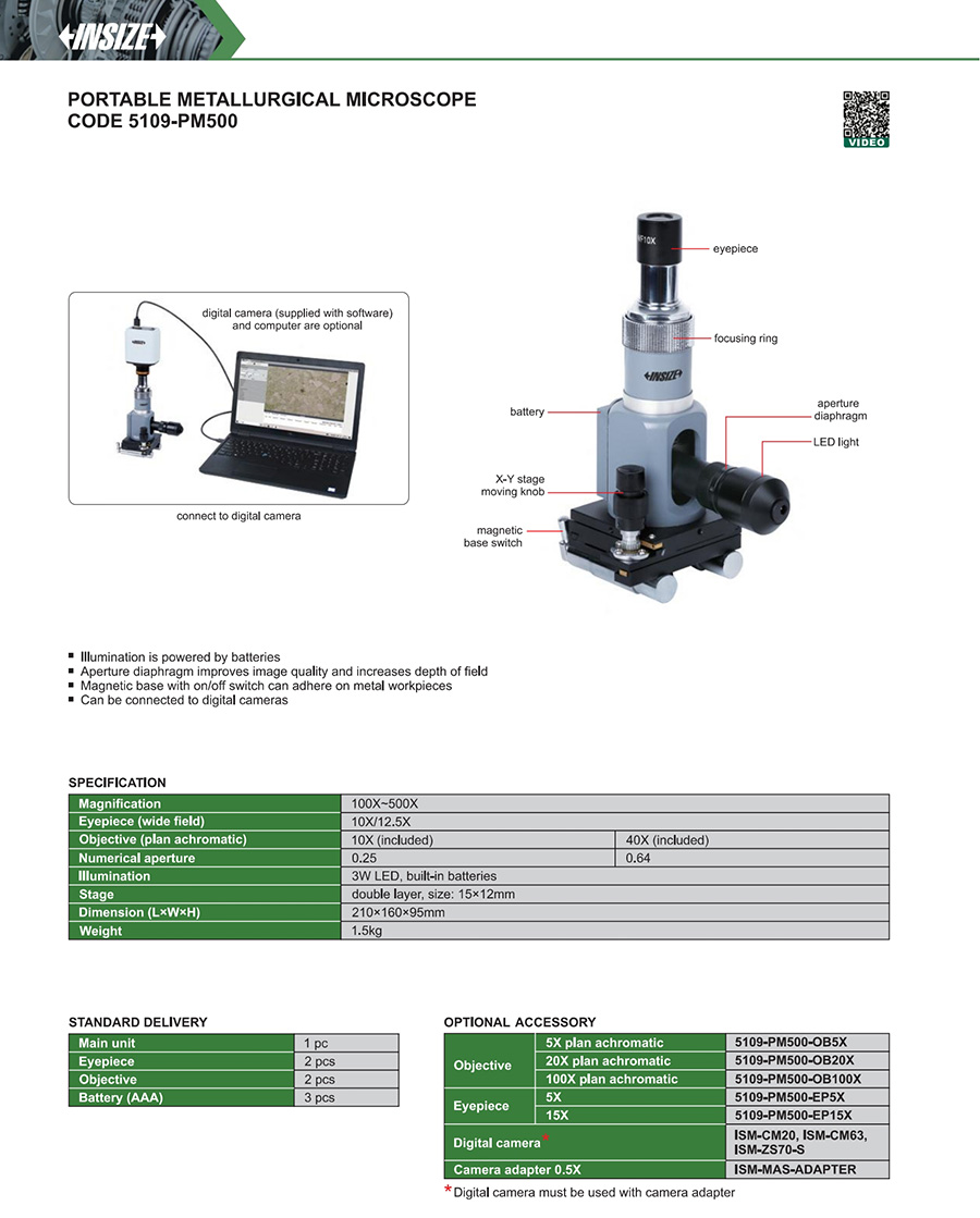 | 5109-PM500 | double layer, size: 15×12mm | 100X~500X | 10X/12.5X | 10X, 40X |