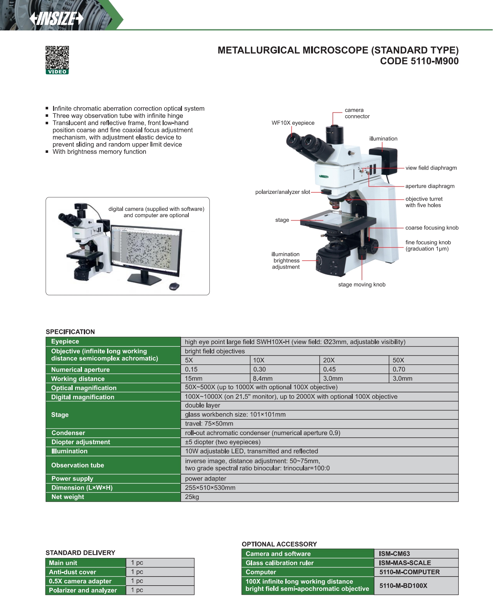5110-M900 glass workbench size: 101×101mm, travel: 75×50mm 50X~500X high eye point large field SWH10X-H bright field