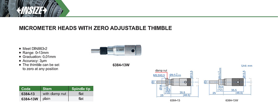 | 6384-13 | 0-13mm | 3μm | 0.01mm | with clamp nut |