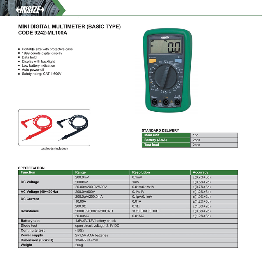 | 9242-ML100A | 3 ½ | 10A | no | 600V | 600V | ±(0.5%+2d) | no | no | no |