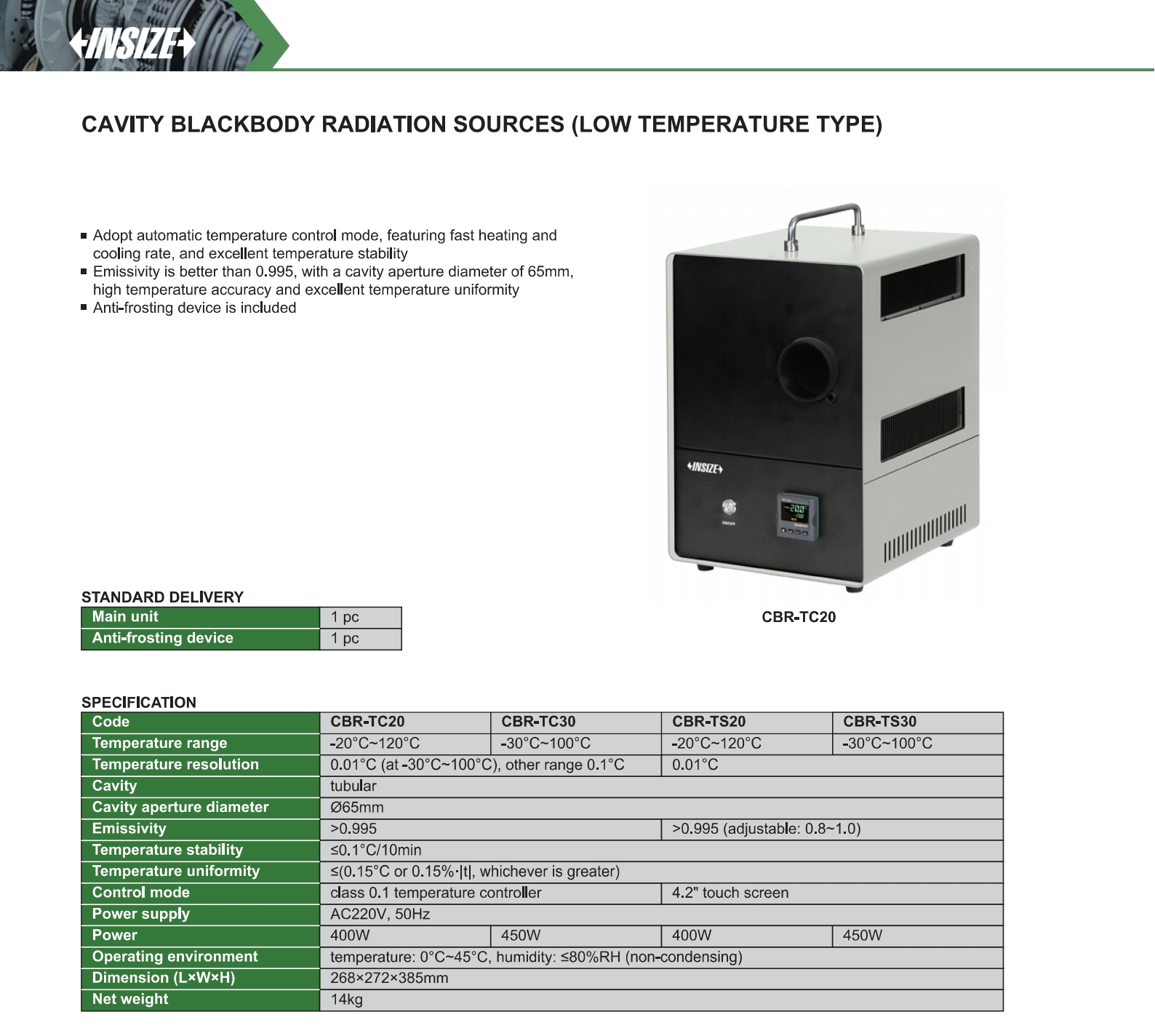| CBR-TS20 | Ø65mm | >0.995 (adjustable: 0.8~1.0) | -20°C~120°C |