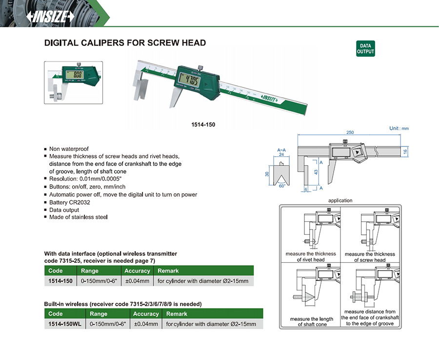 | 1514-150 | 0-150mm/0-6" | ±0.04mm | 0.01mm/0.0005" |