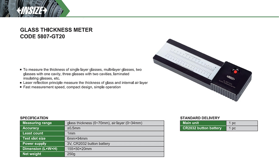 | 5807-GT20 | glass thickness (0~70mm), air layer (0~34mm) | ±0.5mm |