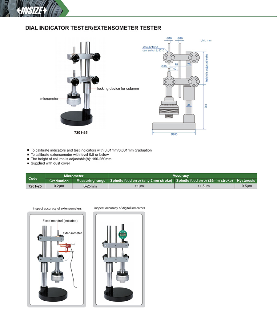 | 7201-25 | 0.2µm | 0-25mm |