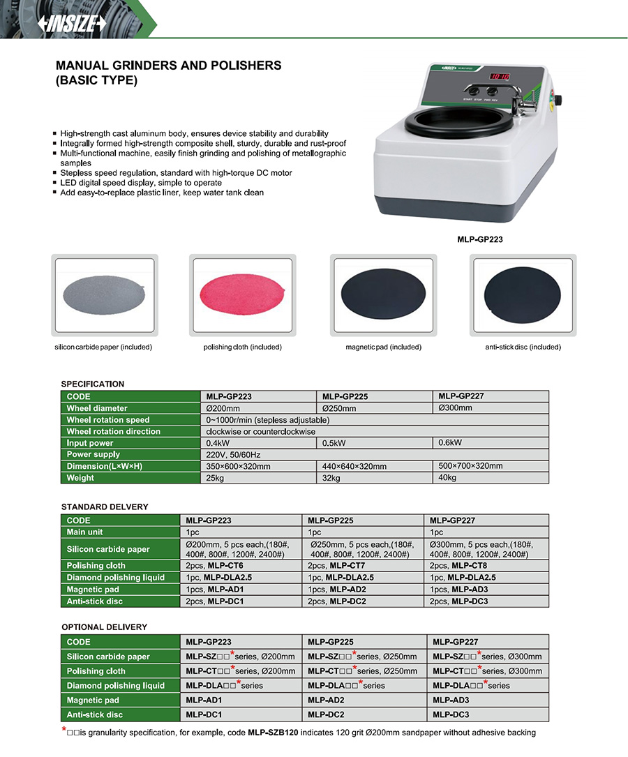 | MLP-GP223 | manual | single | Ø200mm | 0~1000r/min |