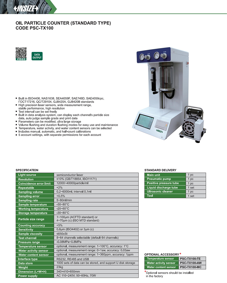 PSC-TX100 semiconductor laser 1~100μm (ACFTD standard) or 4~70μm (c) (ISO MTD standard) 12000~40000particle/ml