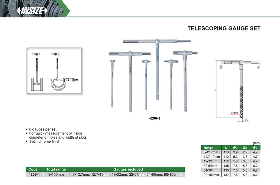 For quick measurement of inside diameter of holes and width of slots