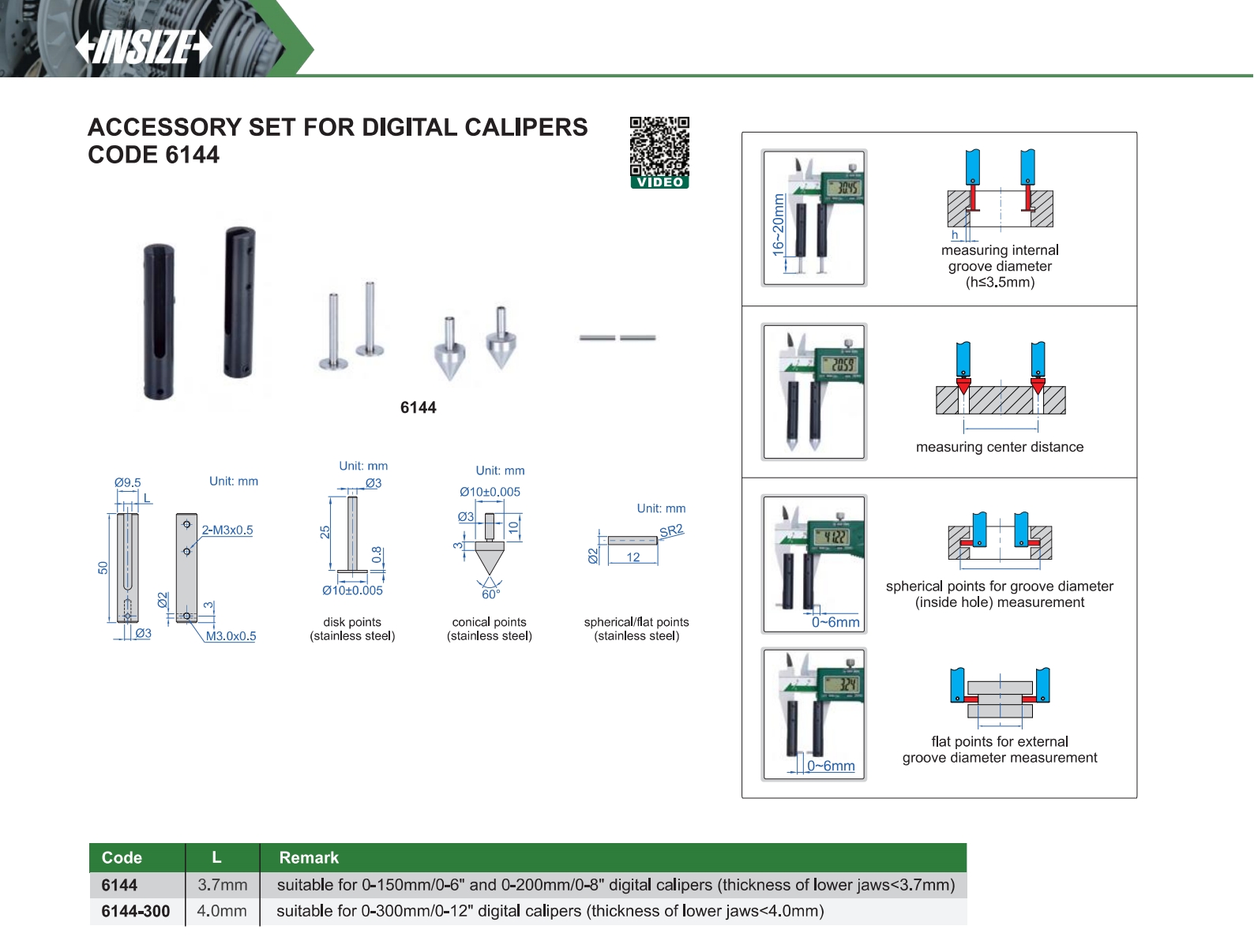 | 6144 | suitable for 0-150mm/0-6" and 0-200mm/0-8" digital calipers (thickness of lower jaws<3.7mm) |