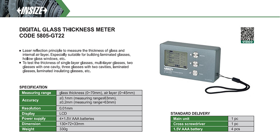 | 5805-GT22 | glass thickness (0~70mm), air layer (0~45mm) | ±0.1mm (measuring range≤63mm), ±0.2mm (measuring range>63mm) |