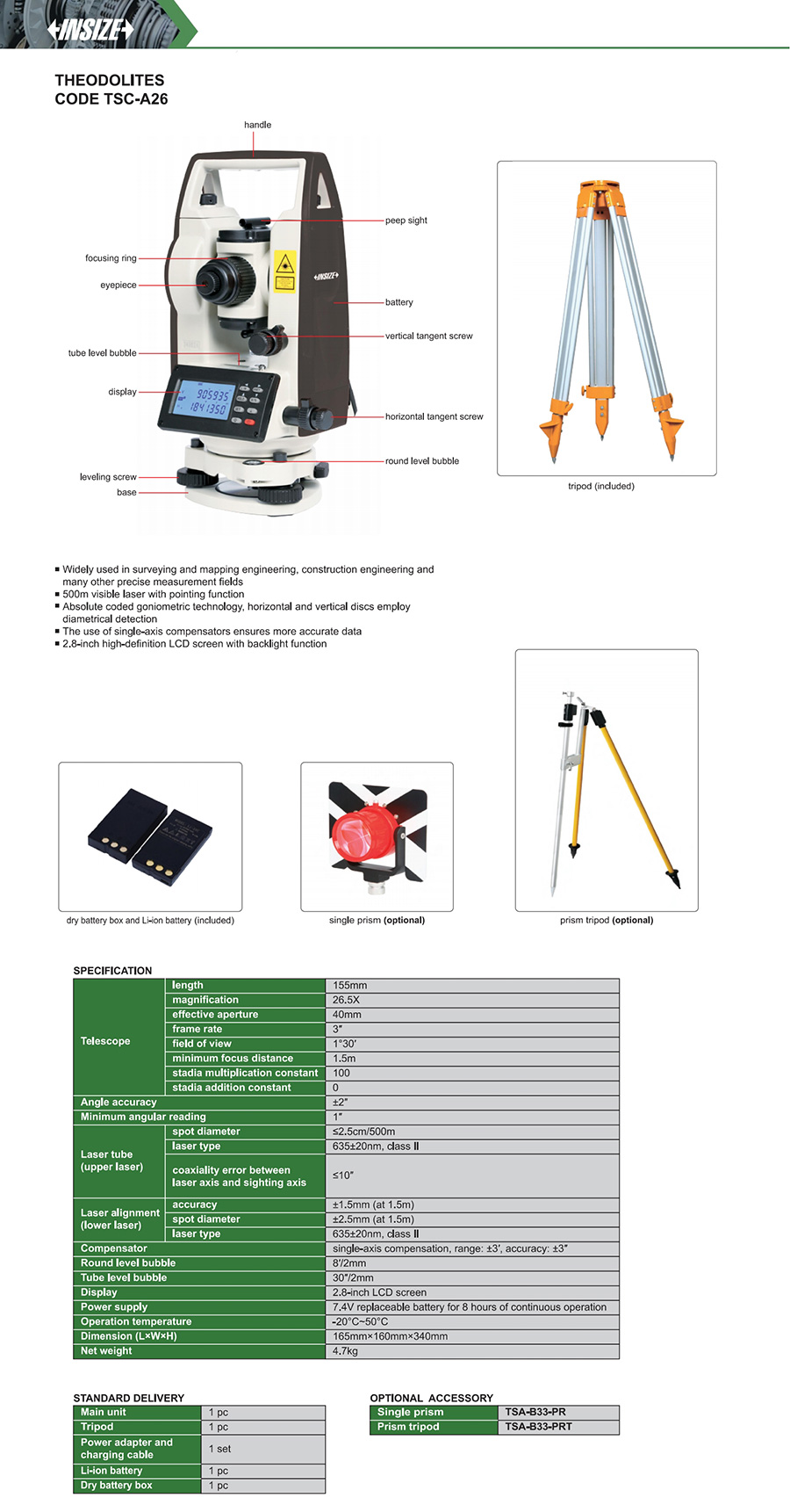 TSC-A26 -20°C~50°C ±2″ single-axis compensation, range: ±3′, accuracy: ±3″