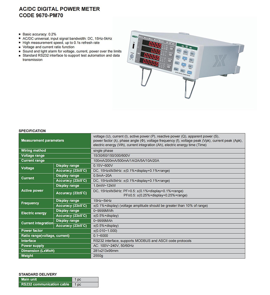| 9670-PM70 | single phase | 15/30/60/150/300/600V | 100mA/200mA/500mA/1A/2A/5A/10A/20A |