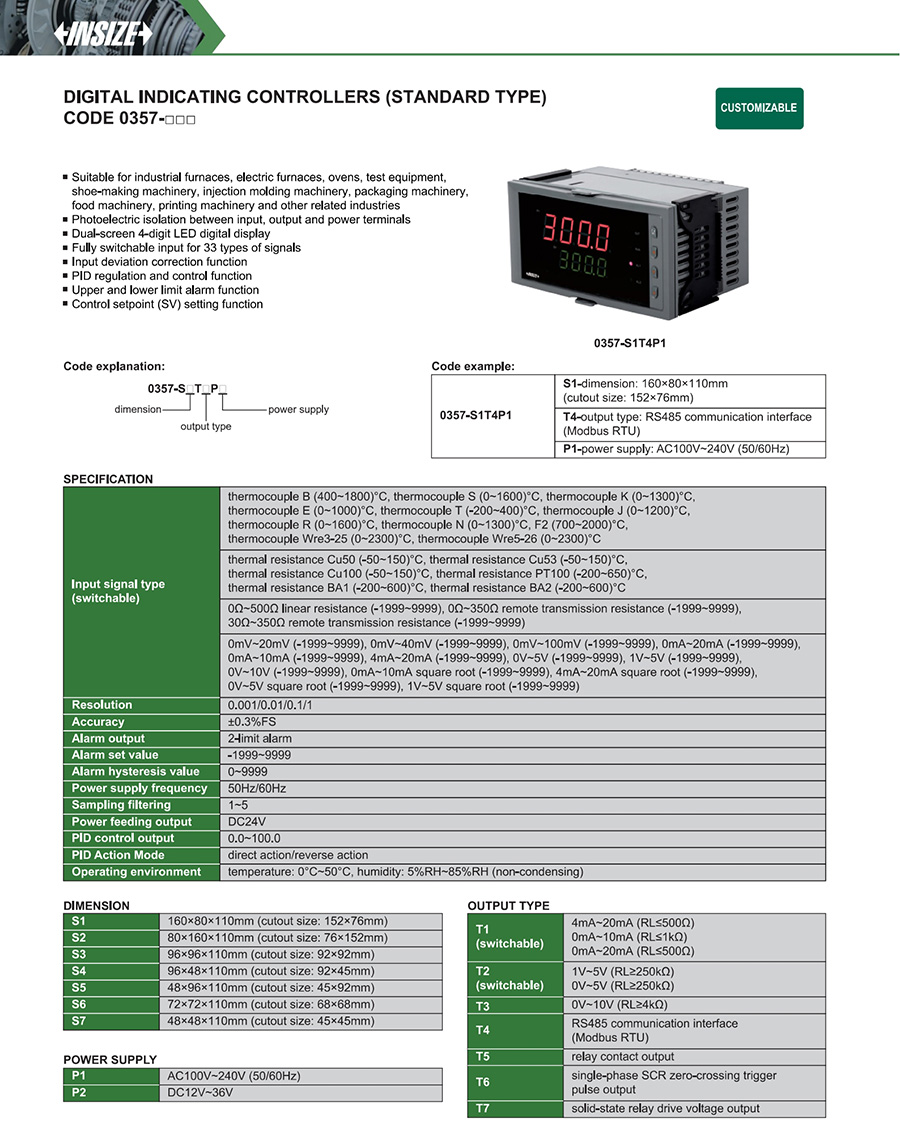 0357-□□□ standard type ±0.3%FS RS485 communication interface (Modbus RTU) 33 types