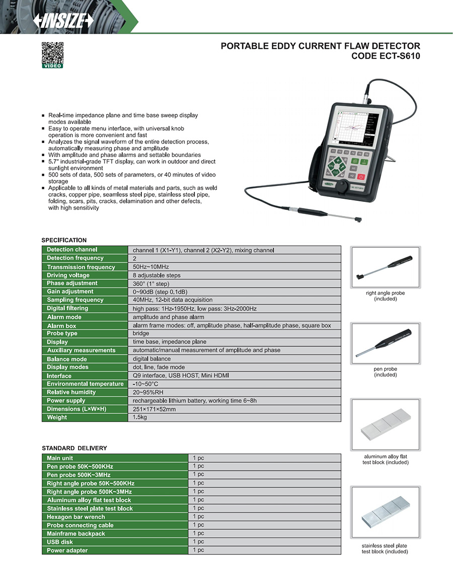 | ECT-S610 | Probe type: bridge | time base, impedance plane | 2 | 360° (1° step) |