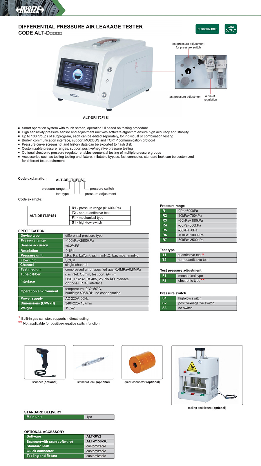 High sensitivity pressure sensor and adjustment unit with software algorithm ensure high accuracy and stability