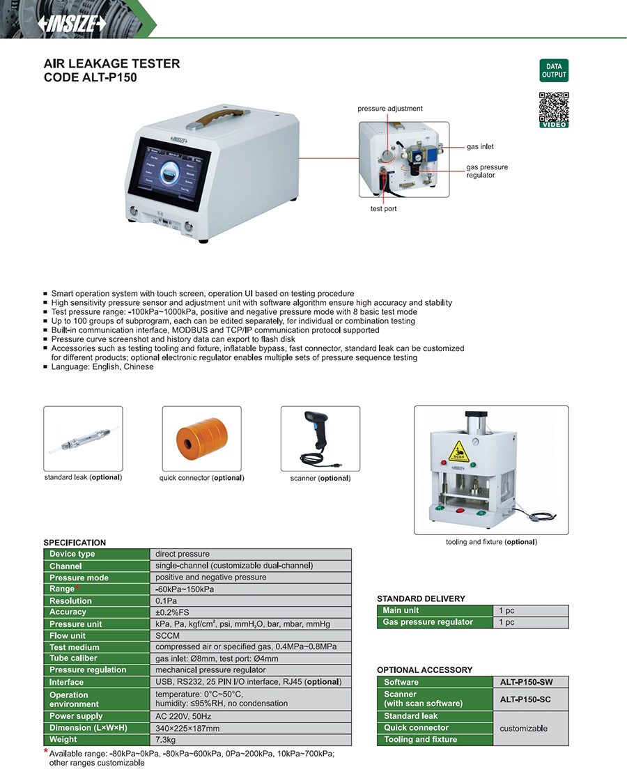 Test pressure range: -100kPa~1000kPa, positive and negative pressure mode with 8 basic test modes