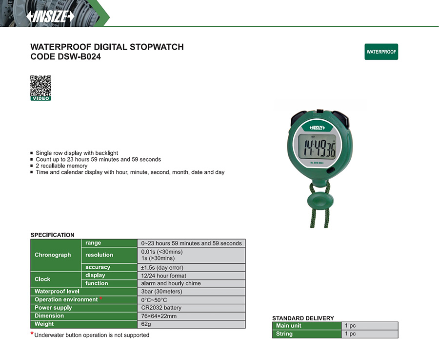 | DSW-B024 | 0~23 hours 59 minutes and 59 seconds | IPX7 |