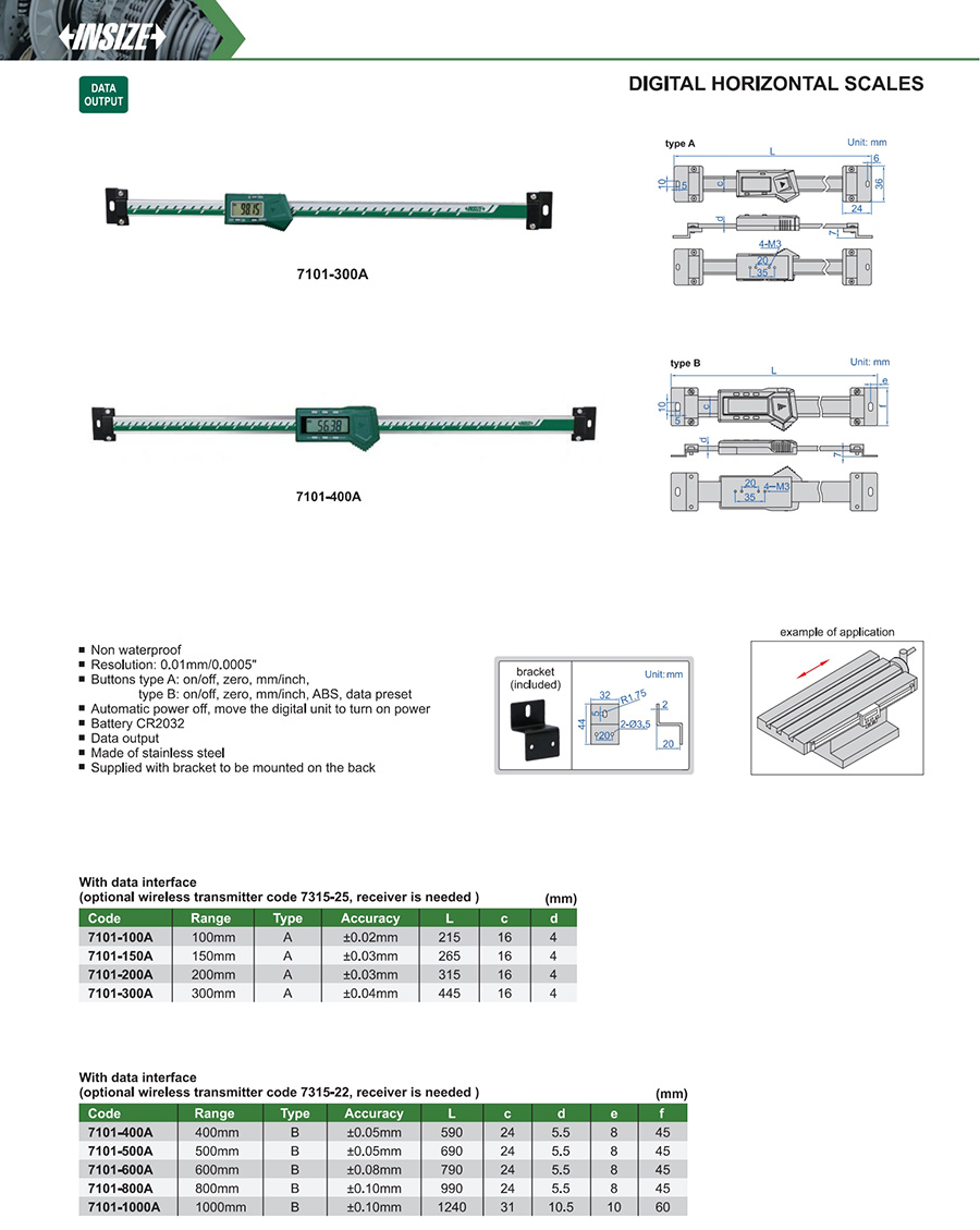 | 7101-200A | 200mm | ±0.03mm | 0.01mm/0.0005" |