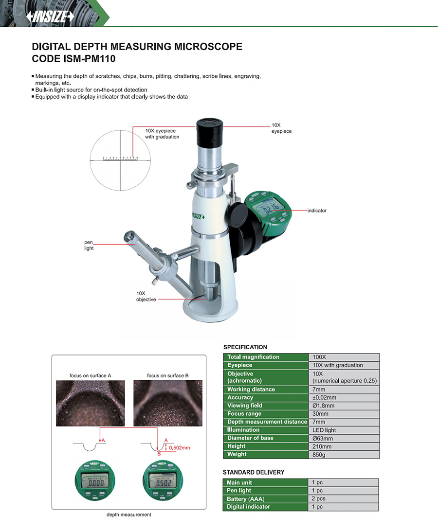 | ISM-PM110 | ±0.02mm | Ø1.8mm | 10X with graduation | 10X |