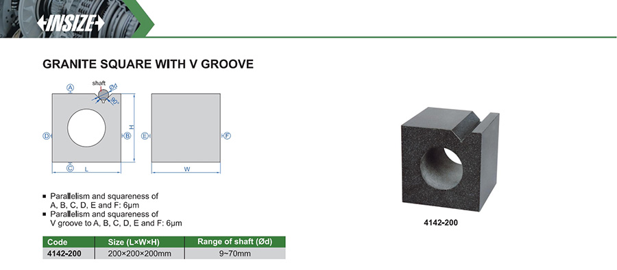 Parallelism and squareness of V groove to A, B, C, D, E and F: 6µm