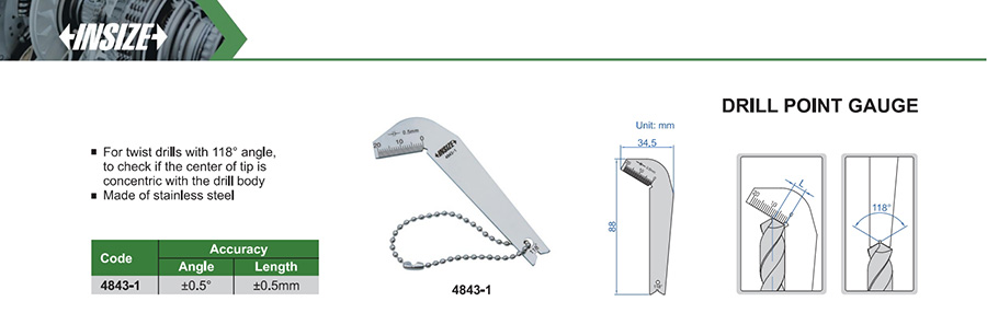 For twist drills with 118° angle, to check if the center of tip is concentric with the drill body