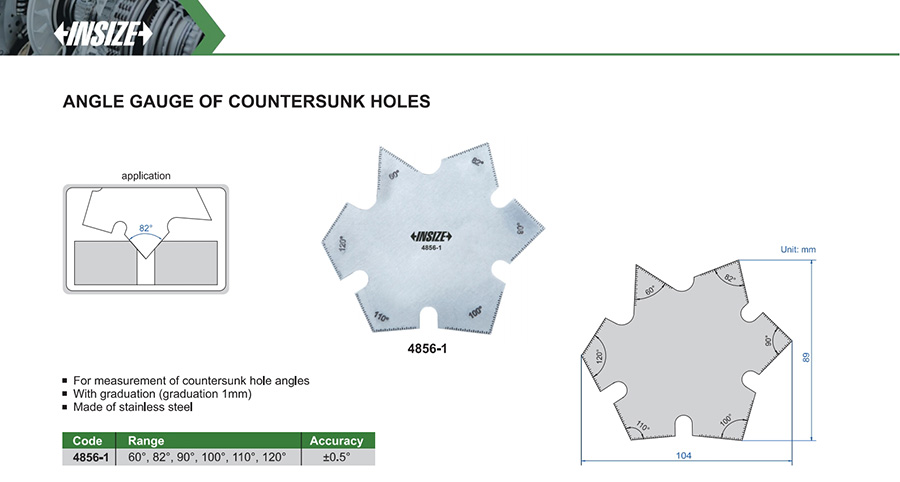 For measurement of countersunk hole angles