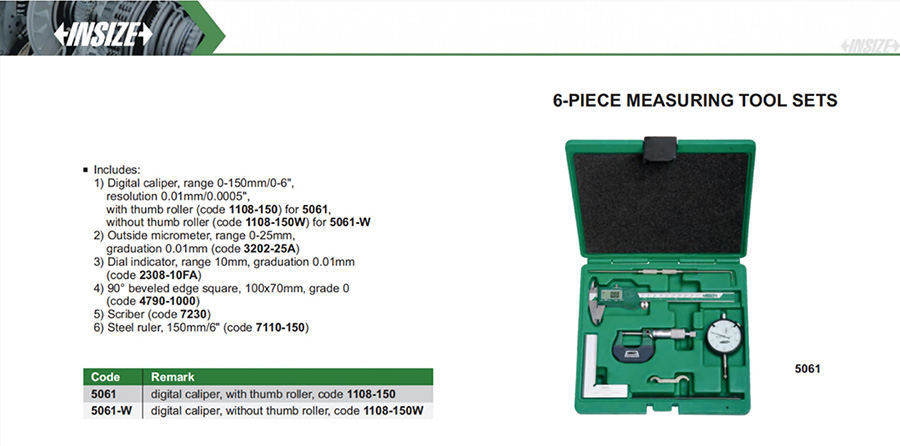 Digital caliper, range 0-150mm/0-6", resolution 0.01mm/0.0005" (code 1108-150)