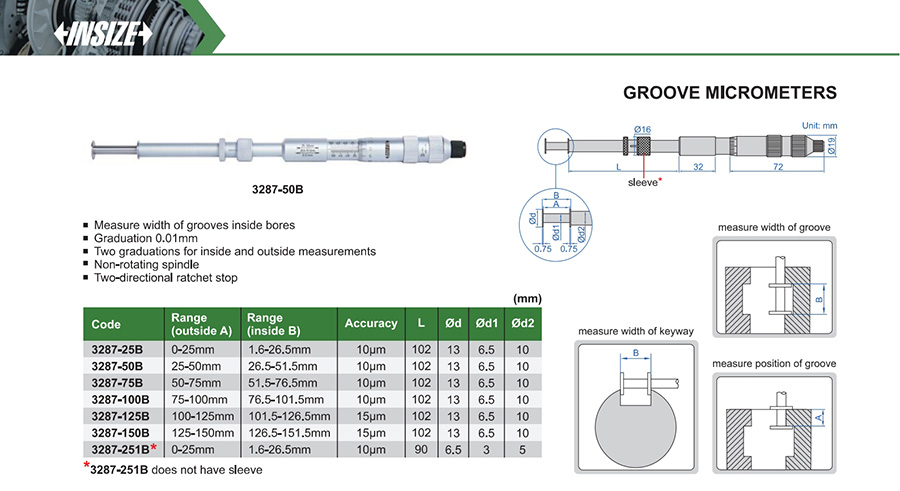 3287-251B 0.01mm 0-25mm 1.6-26.5mm does not have sleeve
