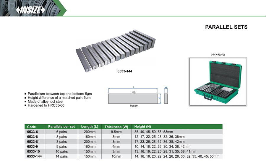 Home / Dimenzijska kontrola / Merilna orodja / Orodja za pripravo in nastavitev / Parallel Sets