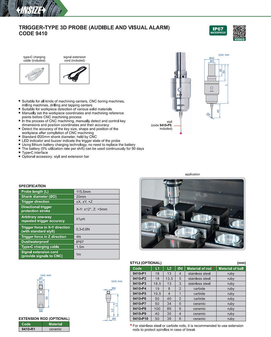 | Code | Accuracy | Probe length (L) | Protection stroke | Trigger force |