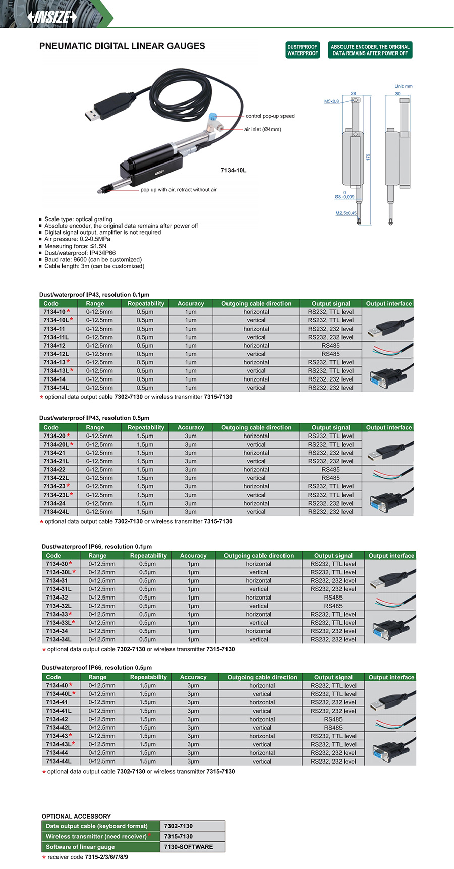 7134-24L optical grating 0-12.5mm 3µm RS232, 232 level vertical