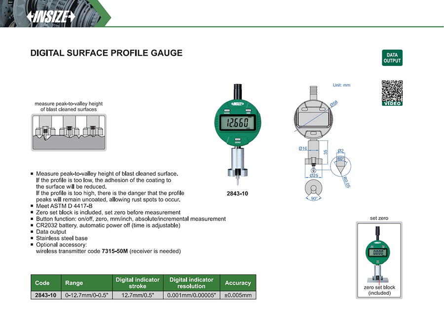 | 2843-10 | 0-12.7mm/0-0.5" | ±0.005mm | 0.001mm/0.00005" |