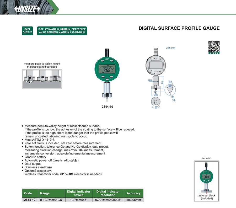 | 2844-10 | 0-12.7mm/0-0.5" | ±0.005mm | 0.001mm/0.00005" |