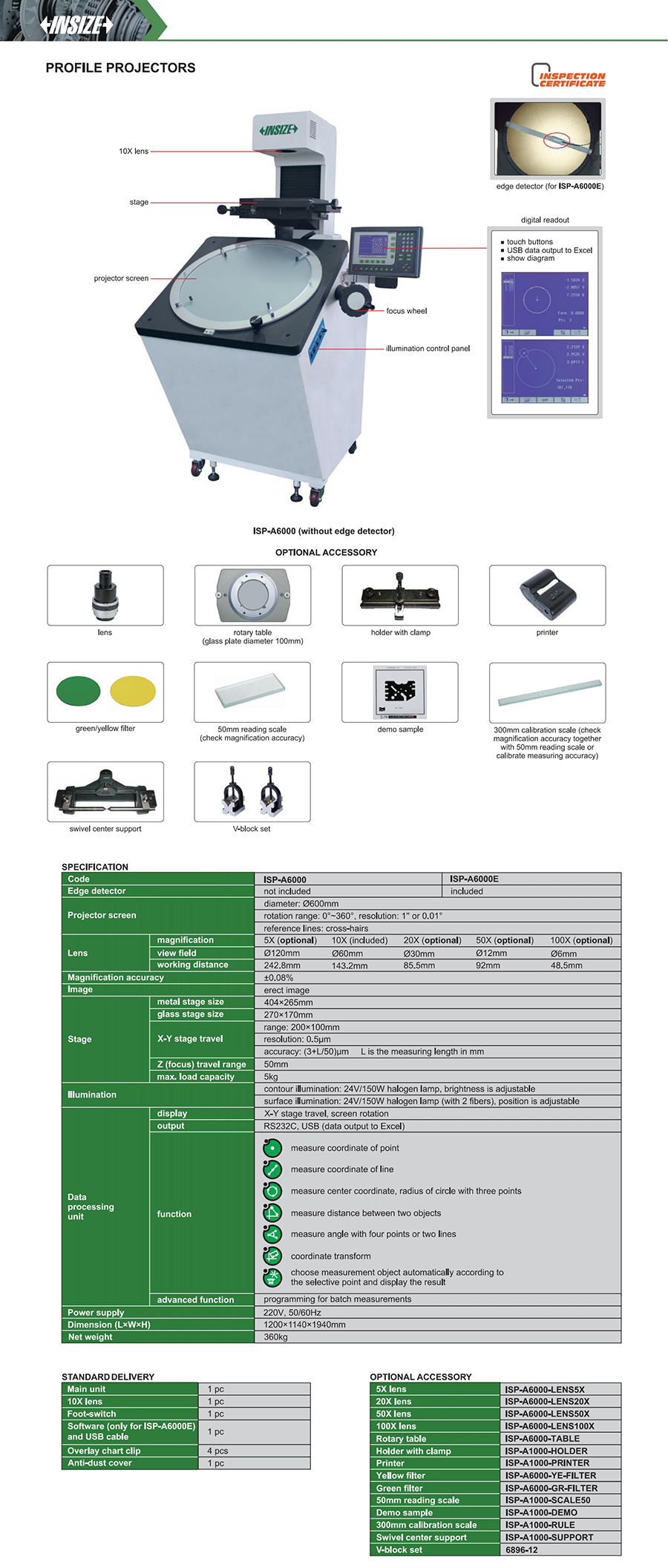 ISP-A6000 vertical 200×100mm (3+L/50)µm 0.5µm not included Ø600mm erect image