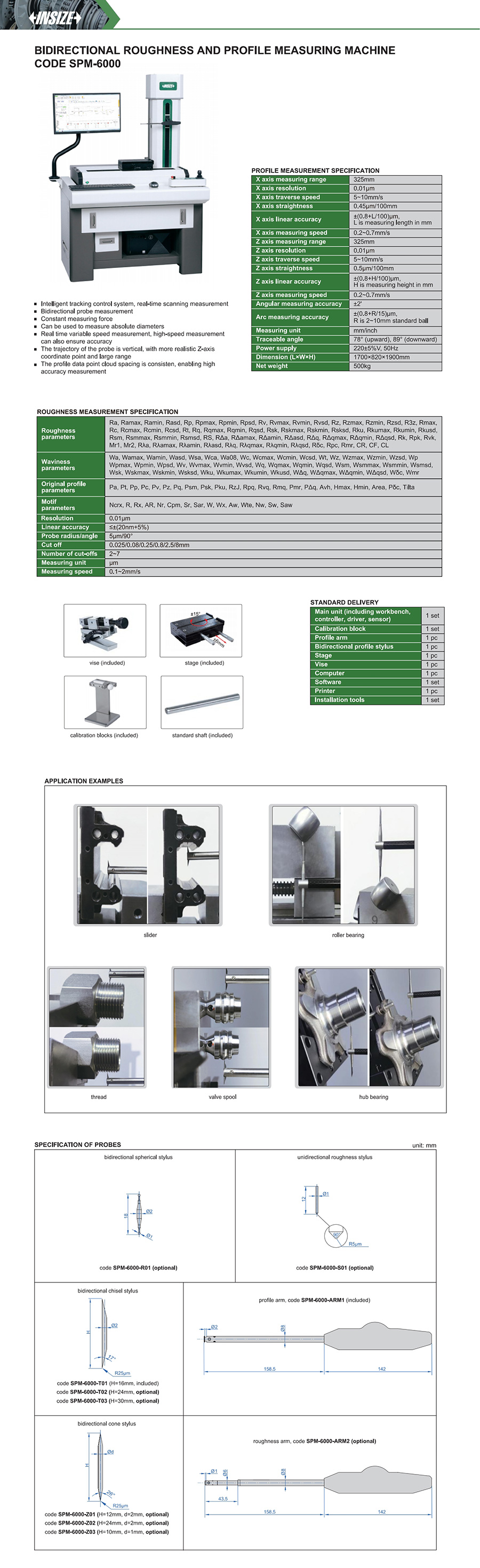 | Code | X axis measuring range | Z axis measuring range | Roughness |