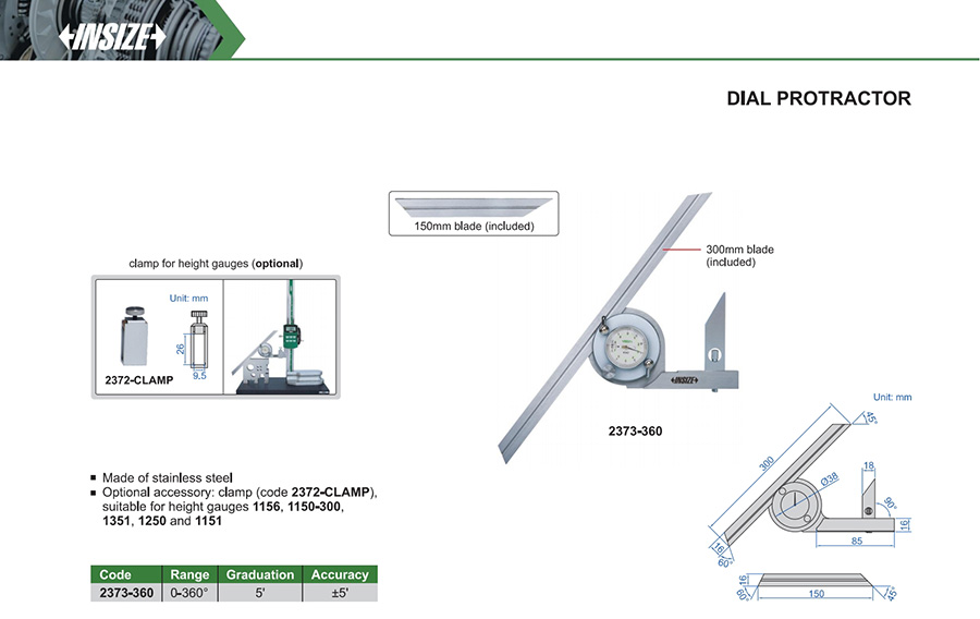 Home / Dimenzijska kontrola / Merilna orodja / Orodja za merjenje kotov, ravnosti in premosti / Protractors