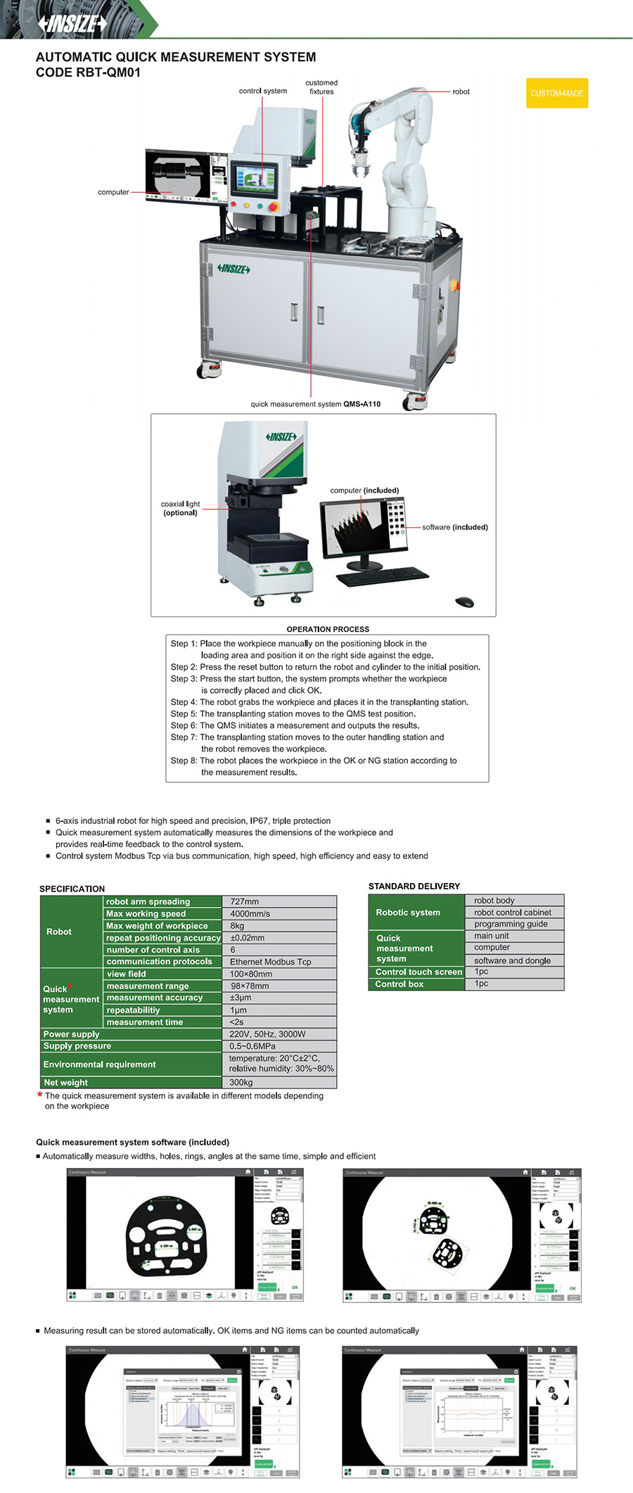 Quick measurement system automatically measures the dimensions of the workpiece and provides real-time feedback to the control system