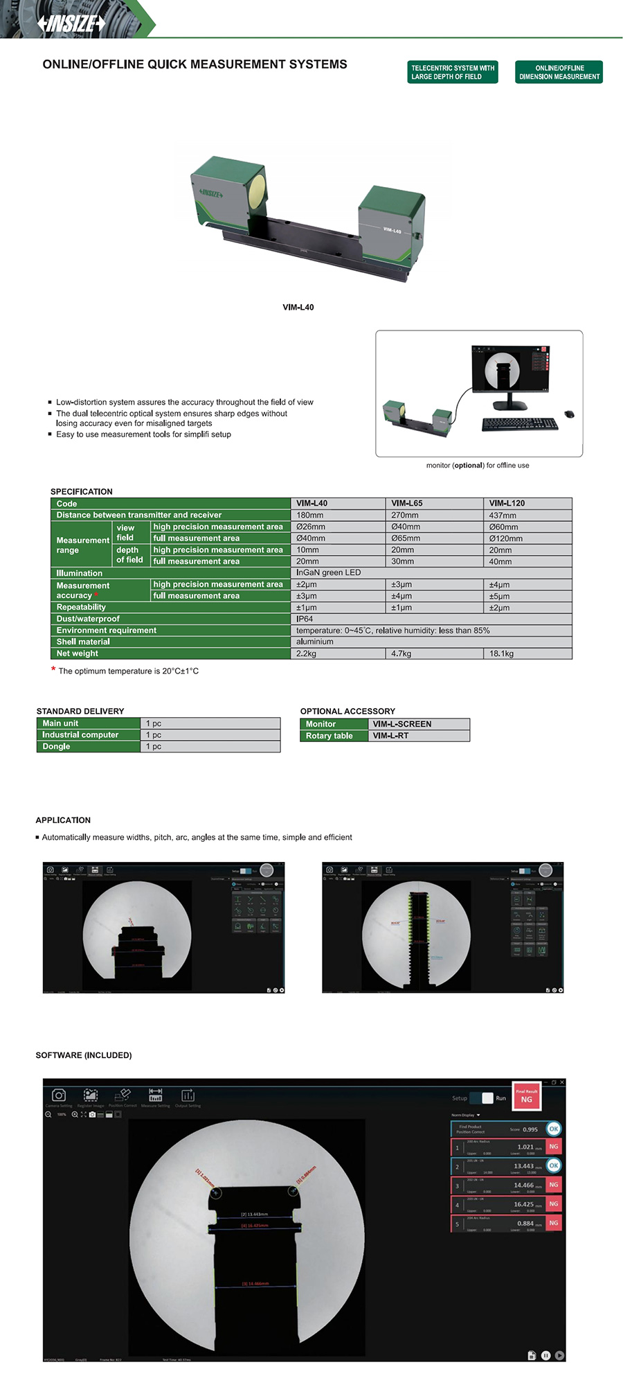 | VIM-L40 | view field: Ø26mm/Ø40mm; depth of field: 10mm/20mm | ±2μm/±3μm | ±1μm |