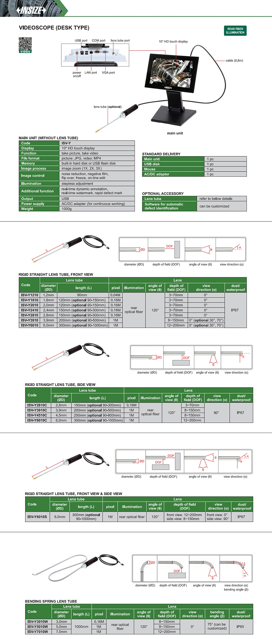 ISV-Y6010C rigid straight lens tube side view 6.0mm 300mm (optional 90-1000mm) 120°