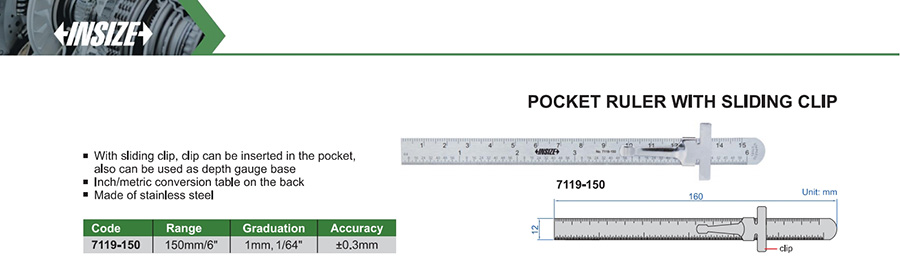 | 7119-150 | 150mm/6" | ±0.3mm | 1mm, 1/64" |