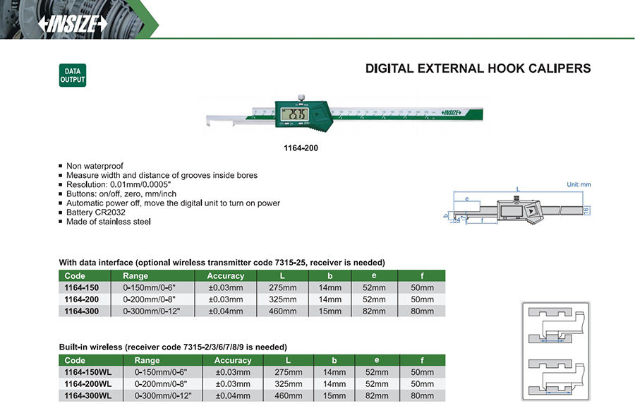 1164-150WL 0-150mm/0-6" ±0.03mm 0.01mm/0.0005" built-in wireless