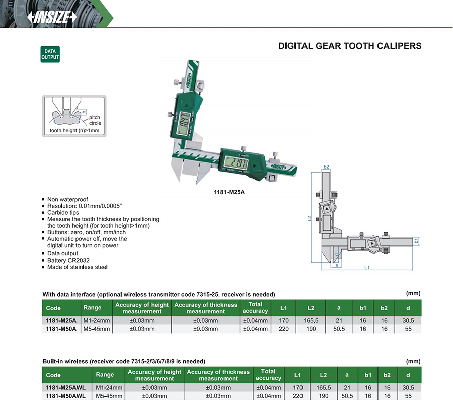 | 1181-M50A | M5-45mm | ±0.03mm | 0.01mm/0.0005" | with data interface |