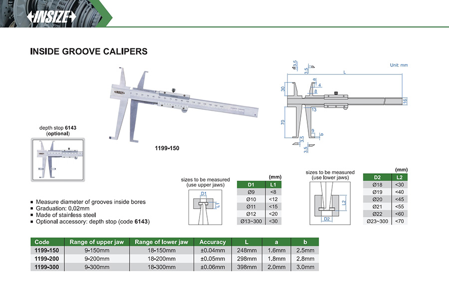 | 1199-150 | 9-150mm | 18-150mm | ±0.04mm | 0.02mm |