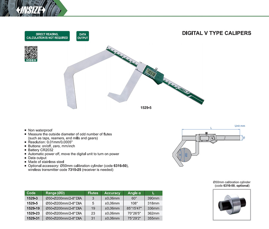 | 1529-5 | Ø50-Ø200mm/2-8" DIA | ±0.06mm | 0.01mm/0.0005" | with data interface |